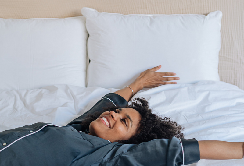 Wenn Sie normalerweise auf dem Rücken schlafen, bedeutet dies, dass Sie ein Schläfer sind, der sich wenig bewegt. Es wird daher empfohlen, ein relativ flaches und dünn gefülltes Kissen zu wählen, um den Kopf weder zu hoch noch zu niedrig zu haben. Ein Memory-Foam-Kissen ist beispielsweise ausreichend weich und für diese Schlafposition geeignet. Auf jeden Fall sollten Sie vermeiden, auf dem Rücken ohne Kissen zu schlafen, da dies Ihren Nacken belasten kann.